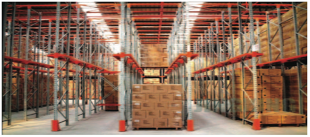 針對有限空間里同類貨物堆垛,推薦使用內(nèi)部駛?cè)胧截浖?。它可幫助減少占用通道,充分利用空間。駕駛員可駕駛叉車進(jìn)入貨架內(nèi)部進(jìn)行堆垛作業(yè)。不但能有效利用整個貨架的存儲空間,且初期投資成本較低。作為較為經(jīng)濟(jì)的批量存儲方式之一,駛?cè)胧截浖苓m用于存儲單位較少,周轉(zhuǎn)率較低的倉庫