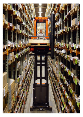 優(yōu)化存儲空間利用率,BT非常窄巷道叉車VECTOR系列人下型車VECTOR-R為橫向托盤搬運提供高效解決方案,人上型車VECTOR-C為全托盤搬運和高位揀選提供高效解決方案。以上兩種作業(yè)皆為窄通道內(nèi)作業(yè),最高可舉升到14.8m,剩余承載能力可以保持在1.5t。在窄通道內(nèi)確保作業(yè)的機動性,最小通道寬度可達(dá)1460mm。這些全能叉車可選擇配置導(dǎo)軌或是電線。每一輛BT VECTOR系列叉車都能在確保駕駛安全性和舒適性的同時,為客戶提供卓越的性能。VNA較其他密集存儲方式實現(xiàn)了對所有托盤位的直接和高效存取,同時更窄的通道寬度較前移式叉車實現(xiàn)了更高的空間利用率。對于擁有較多存儲單位,且周轉(zhuǎn)率較高的冷庫客戶而言,是高效密集存儲的最理想解決方案。