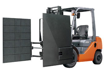 用獨自的壓紙卷軸防止貨物的落下。從兩側夾箱形的貨物不會損壞貨物的進行搬運。